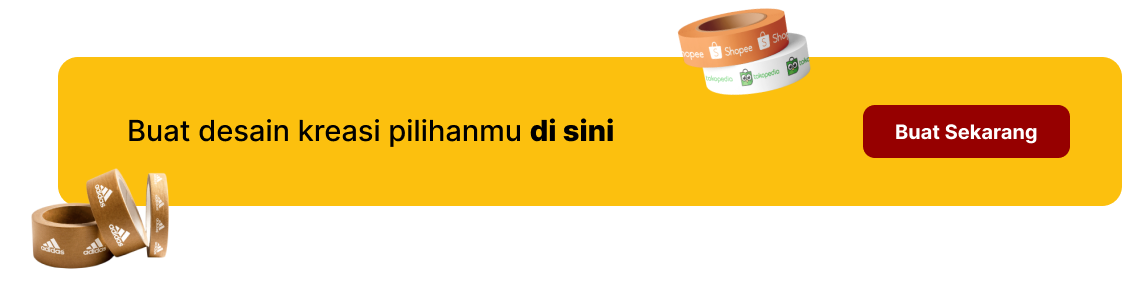 Anda dapat membeli produk Lakban Custom dengan sistem Preorder. Yang dimana pesanan anda akan dikirim setelah Setelah anda melakukan pembayaran dan proses desain disetujui sampai selesai diproduksi.